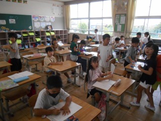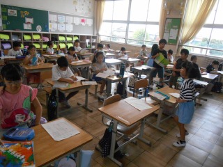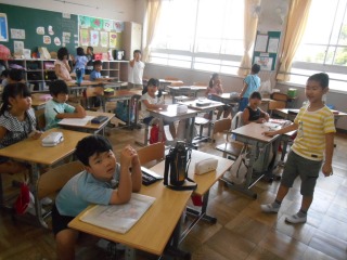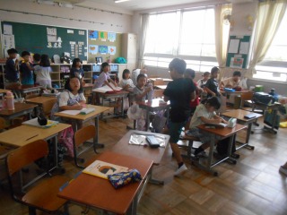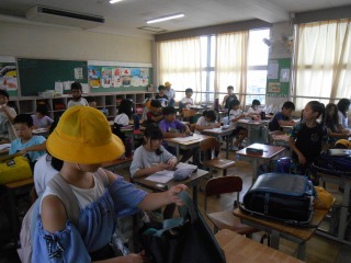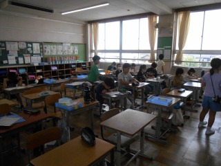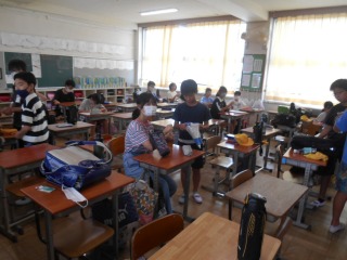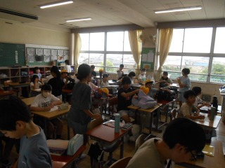 暑い中登校し、教室に着いてほっと一息。今日の準備を進めていました。