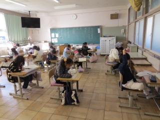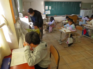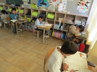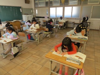 「どうぶつのあかちゃん」の単元です。内容を読み取り、ワークシートにカンガルーの体の特徴を書き込んでいました。