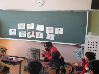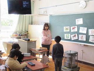 VATの皆さんに来ていただき、外国語活動を行っていただきました。動物の特徴をジャスチャーで表現し、答えを見つけていきます。担任の先生もジェスチャーに参加。みんな楽しんで活動していました。