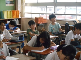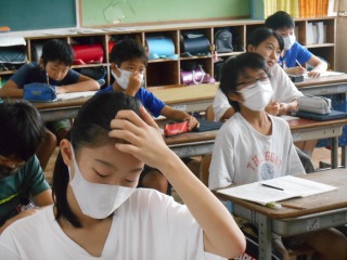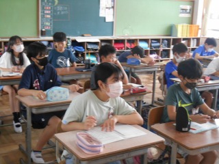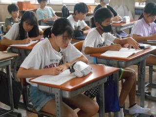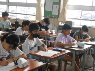 明日の時間割を確認していました。連絡帳に書き留めているところでした。
