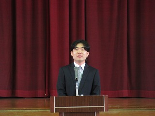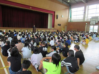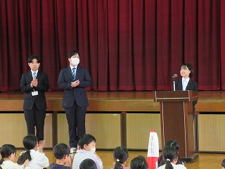 本日は6年生が修学旅行から戻り、全学年そろっての朝礼となりました。本日から3週間の教育実習が始まります。3名の実習生さんが自己紹介を行いました。それぞれ、4年2組、5年2組、6年2組のみなさん、よろしくお願いしますね。