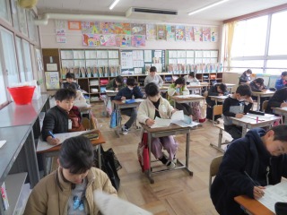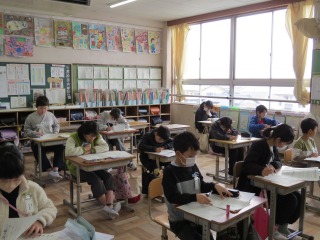 テストを行っていました。もののあたたまりかたや天気と気温について復習する問題でした。
