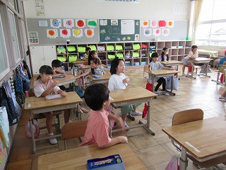 1年2組が、席かえをしていました。みんなわくわくしていました。