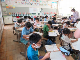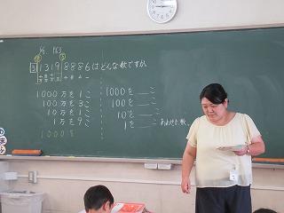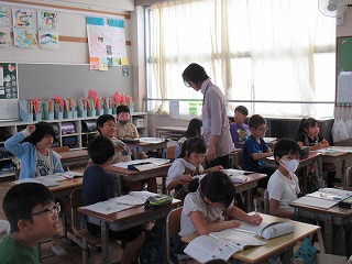 3年1組では、算数の授業が行われていました。TTの田中先生もお助けマンとして、教えてくれています。