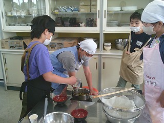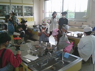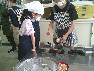 今日は、調理実習を行いました。だしをとる学習でした。一番だし、二番だしをとり、和食の大切な工夫を学習していました。
