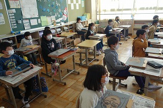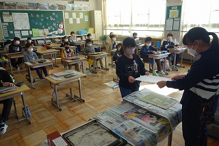 4年2組の図画工作は、版画の刷り方の説明を聞きました。