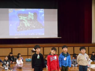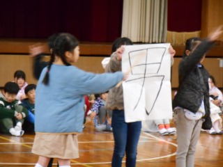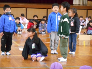 2時間目から3時間目、明和幼稚園と木田幼稚園より年長の皆さんを招き、交流会を行いました。1年生が小学校の生活についてクイズや寸劇を交えながら紹介しました。今日の会で知ったことを踏まえ、来年度の1年生が安心して登校できるといいです。