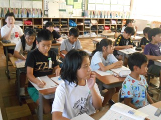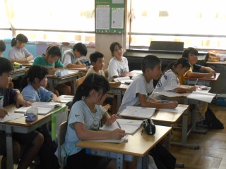 ローマ字の学習をしていました。「しゃ」や「しゅ」はどう書くか、確認をしていました。