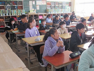 5年2組は卒業式練習を終えて、その振り返りを行っていました。自分たちが気持ち悪くなってしまった場合の対応方法などを確認していました。