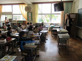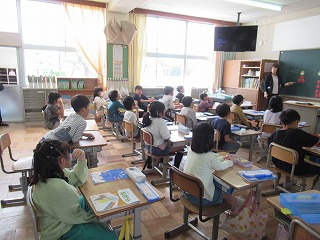 3年1組は算数の時間でした。黒板に掲示されたいちごはこれからどうなっていくのかな?