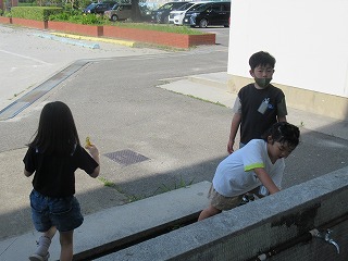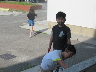 2年生が、野菜の苗の水やりのため、ペットボトルに水を入れていました。