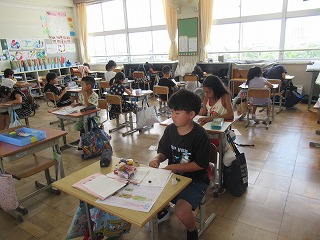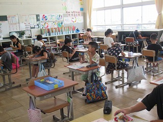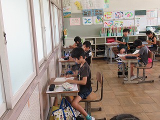 3年2組では、理科のテストが行われていました。みんなしっかり考えていました。