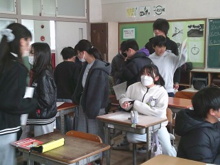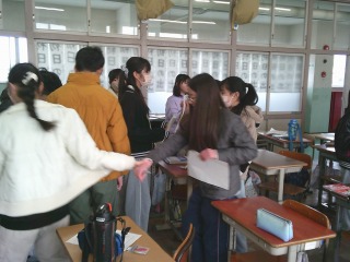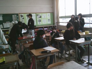 「ウォンテッド」を行っていました。ワークシートにある8つの質問に当てはまる子を教室から探します。早い子は、時間が来る前に8人見つけていました。