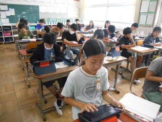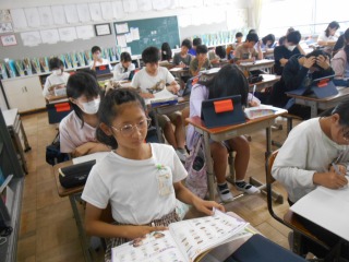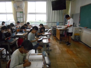 作文を書いていました。先週行った、「福祉実践教室」で学んだことを書いていました。
