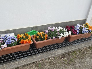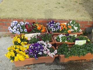 卒業式に向けて、パンジーの花を育てています。みごとに咲き誇っています。