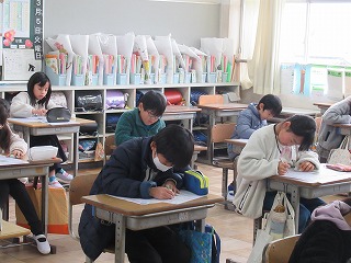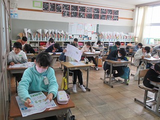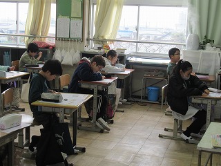 3年1組はテストに取り組んでいました。3月は学習のまとめの時期です。分からなかった問題があれば、この時期にしっかり復習して理解していきましょうね。