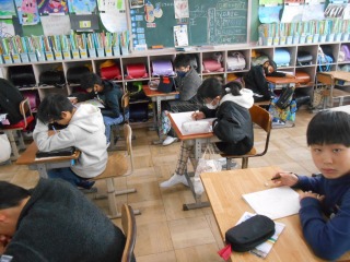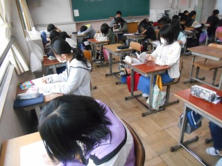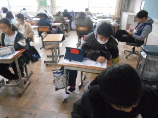 テストを行っていました。終わった人は、自分の課題に合わせて時間を使っていました。