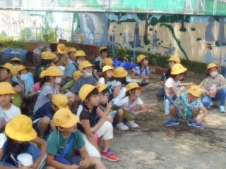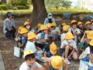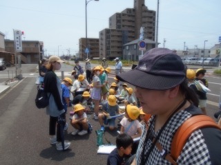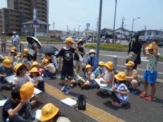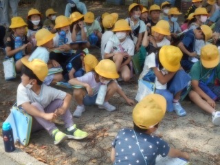 先週に引き続き、町探検へ出かけました。今日は、南方面、神社や木田駅をめぐりました。暑い日でしたが、PTAボランティア9名の方が引率をお手伝いくださいました。安全に町探検を終えることができました。本当に、ありがとうございました。