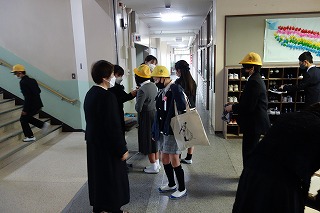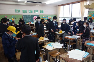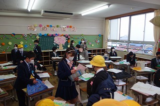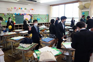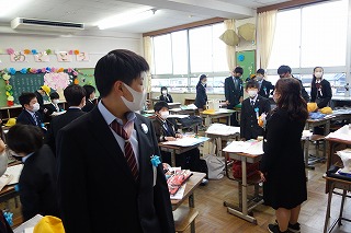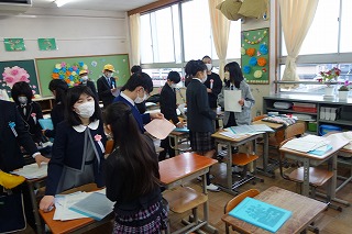今日は卒業式です。6年生が、晴れやかな表情で登校し、教室で仲間とお話をしていました。