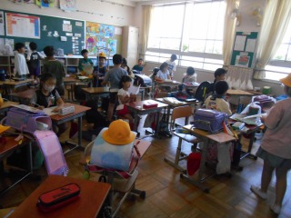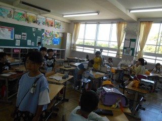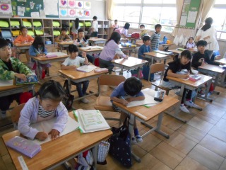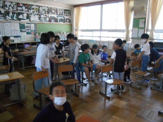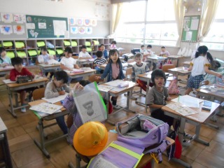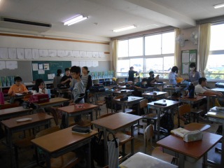 昨日までの雨は上がり、さわやかな日となりました。この後、中学年と支援学級での読み聞かせがあり、席の移動をしているクラスがありました。