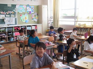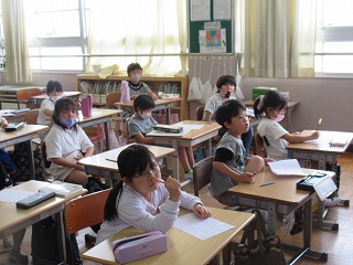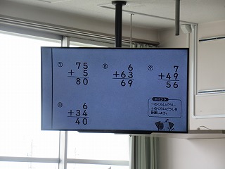 2年2組では、朝学習の時間、算数のプリントに取り組み、モニターを使い、答え合わせをしているところでした。