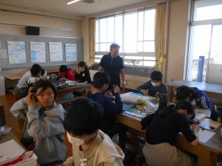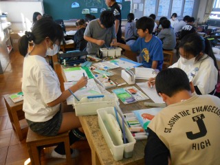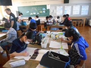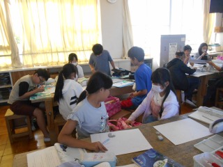 読書感想画に取り組んでいました。鳥の絵を描いている子が多く、どう描くか悩みながら制作していました。