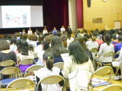 6年生は、体育館にて、修学旅行の事前学習発表と説明会でした。