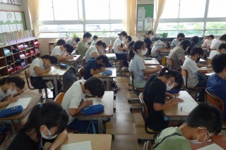 6年1組の国語は、漢字の学習を行いました。最初に、漢字の小テストを行いました。
