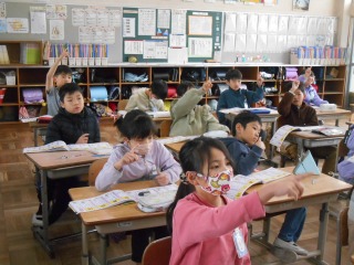 新出漢字の学習をしていました。画数の多い漢字が多くなり、書き順が難しくなってきています。みんなで「比」の書き順を確認していました。