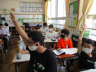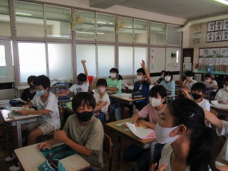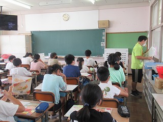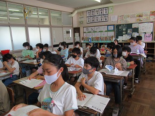 6年1組では、夏休みの課題やプリント類を配付していました。いよいよ明後日から夏休みが始まります。楽しみですね。