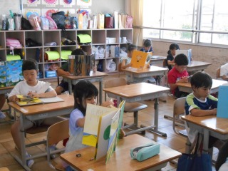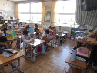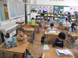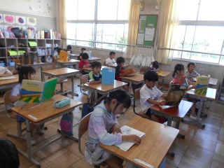本に夢中です。最近、1年生もカメラの方を向くことなく、集中できるようになってきました。