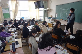 5年1組の社会は、防災について学びました。避難所の生活をイメージしながら防災の話を聞きました。