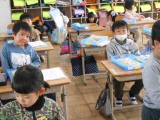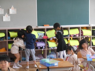 お道具箱に入れる物、カバンにしまっておく物をkぅ別してしまっているところでした。
