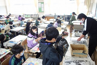 3年2組の図画工作は、版画と「ひらいて広がるふしぎなせかい」の制作に取り組みました。