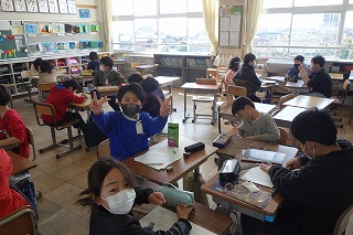 3年1組の学級活動は、班で協力してクイズを考えました。