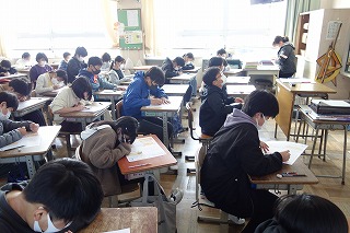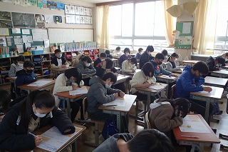 6年2組の国語は、漢字テストに集中して取り組みました。
