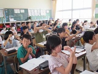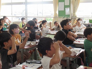 5年1組では、理科の時間、顕微鏡の使い方について、学習していました。