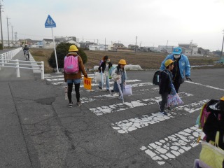 曇り空で、寒い日となりました。見守り隊の方に声を掛けられながら、登校してきました。