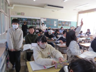 どちらのクラスも「変わり方」の単元を学習していました。わからない数を〇や△で表しながら、数を求めていました。6年生で学習する文字式の基礎です。