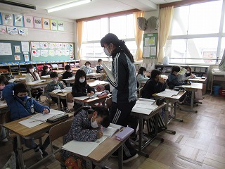 2年2組では、算数の授業が行われていました。1000を超える数について学習していました。