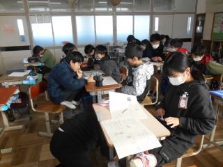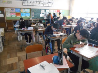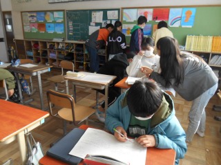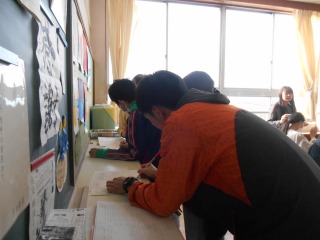 学習した内容の応用問題に取り組んでいました。お互い協力して考えたり、先生に確かめたりしながら、解答していました。