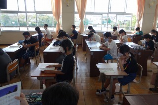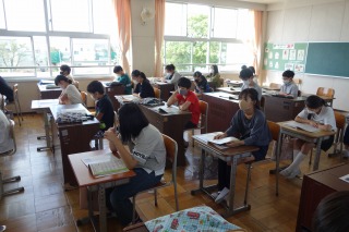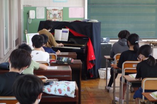 6年1組の音楽は「星の世界」の学習でした。曲を、CDとピアノ演奏で聞いて覚えました。