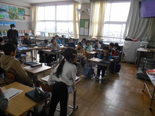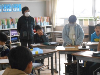 ドッジボール大会でのできごとを資料にし、登場人物の思いに迫っていました。
