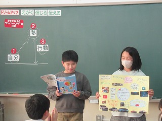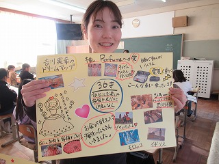 それぞれが工夫を凝らして作成したドリームマップ。午後には、みんなの前で発表が行われました。将来の職業や住む家など、欲しいもの・なりたいものなど、個性豊かなドリームマップがたくさんありました。