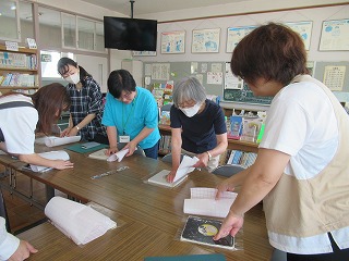 本日、読み聞かせボランティアがありました。その後、図書室の貸し出し用の図書の修繕作業を行ってくれました。さらに本にカバーを付けていただき、大変ありがたく思います。これで、人気の本を子ども達に長く使ってもらえるようになります。今後も保護者の方にお力を貸していただき、ボランティア活動に取り組んでいければと思います。
