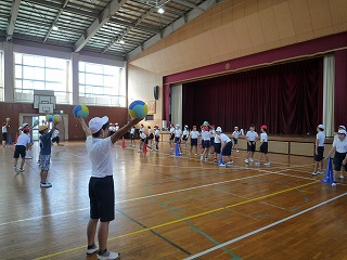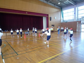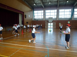ボールが2バウンドする前にキャッチする活動に取り組んでいました。
