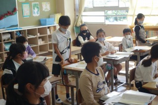 4年2組の道徳は「かっこいいせなか」の学習でした。登場人物の気持ちについて考えました。