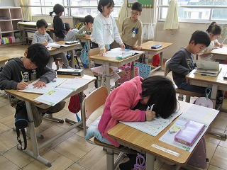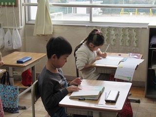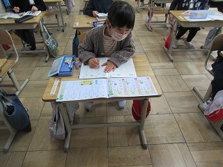 1年2組は、国語の授業が行われていました。文字を丁寧に書いている姿が見られました。