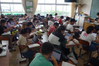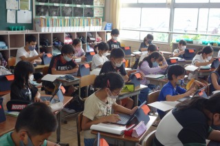 5年2組の社会は、お米の冷害についてと、それに対する品種改良についてタブレットを使って調べました。