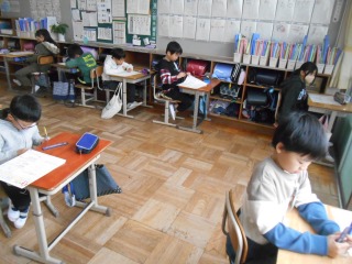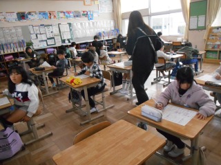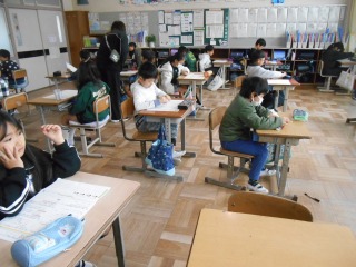 「話す・聞く」のテストを行っていました。話し合いにおいて何を大切にするといいか、聞き取りテストも含めて学習したことを確認していました。
